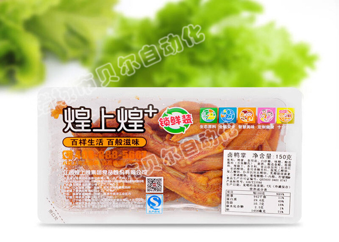 真空充氣包裝機廣泛用于生熟肉、禽、魚以及果蔬等休閑食品,面包、糕點和盒飯等食品的盒式包裝和袋式包裝,它利用CO2、O2、N2等保護性混合氣體所起的不同作用,有效抑制微生物生長繁殖。經過真空充氣包裝的食品,較好地保持了食品原有的口感、色澤、形狀及營養,同時可達到較長的保鮮期。