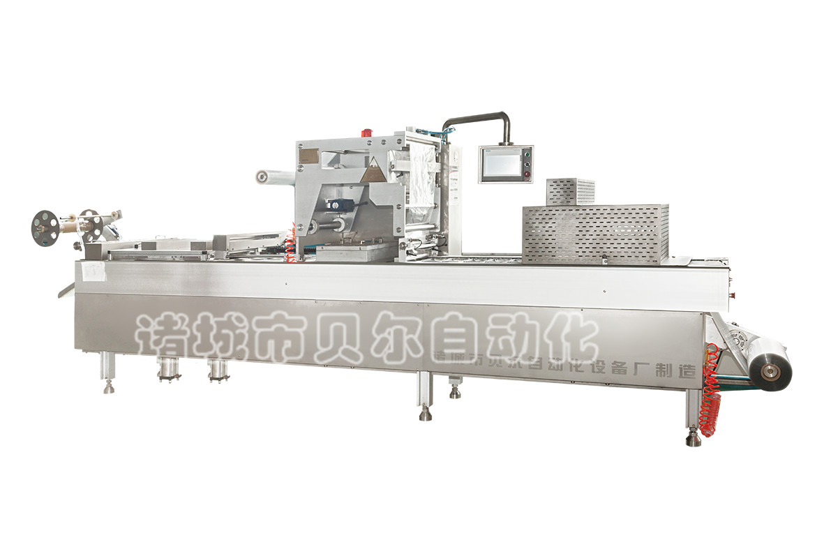 1、控制系統(tǒng)先進(jìn) 該系列包裝機(jī)采用德國西門子觸摸屏、PLC及步進(jìn)控制系統(tǒng),配用原裝德國普旭真空泵。整機(jī)通過人機(jī)界面智能調(diào)節(jié)方便,步進(jìn)精度高,各動(dòng)作協(xié)調(diào)一致,自動(dòng)化程度高。 2、功能齊全 (1)可以在同一臺(tái)設(shè)備上選用彩膜或光膜覆膜形式; (2)可以根據(jù)用戶產(chǎn)品包裝要求配備自動(dòng)打碼/噴碼系統(tǒng); (3)根據(jù)用戶產(chǎn)品包裝要求在抽真空的基礎(chǔ)上,可以充N2、02、CO2 混合氣體或單一氣體,氣體混合比例可以通過氣調(diào)控制器方便調(diào)節(jié); (4)設(shè)備配備斷相保護(hù)系統(tǒng),漏電保護(hù)系統(tǒng),相序保護(hù)系統(tǒng),避免因停電,漏電以及人工操作失誤而造成的設(shè)備損壞,同時(shí)保障操作人員人身安全; (5)設(shè)備配置上下模自動(dòng)糾偏系統(tǒng),通過電腦自動(dòng)感應(yīng)覆膜與底膜精準(zhǔn)走向,及時(shí)調(diào)整覆膜材料在生產(chǎn)過程中出現(xiàn)的纏繞端面不平問題,使產(chǎn)品包裝外觀更加完美,同時(shí)避免膜材浪費(fèi)。 四、主要技術(shù)參數(shù) 見附件圖片